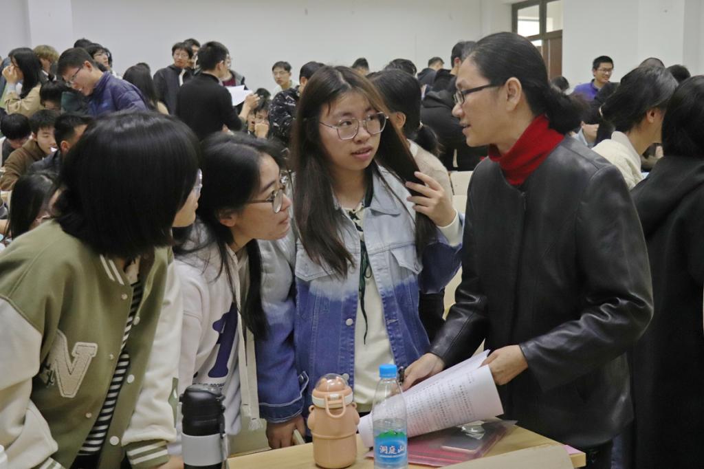 启动仪式结束后,导师和本科生见面交流。