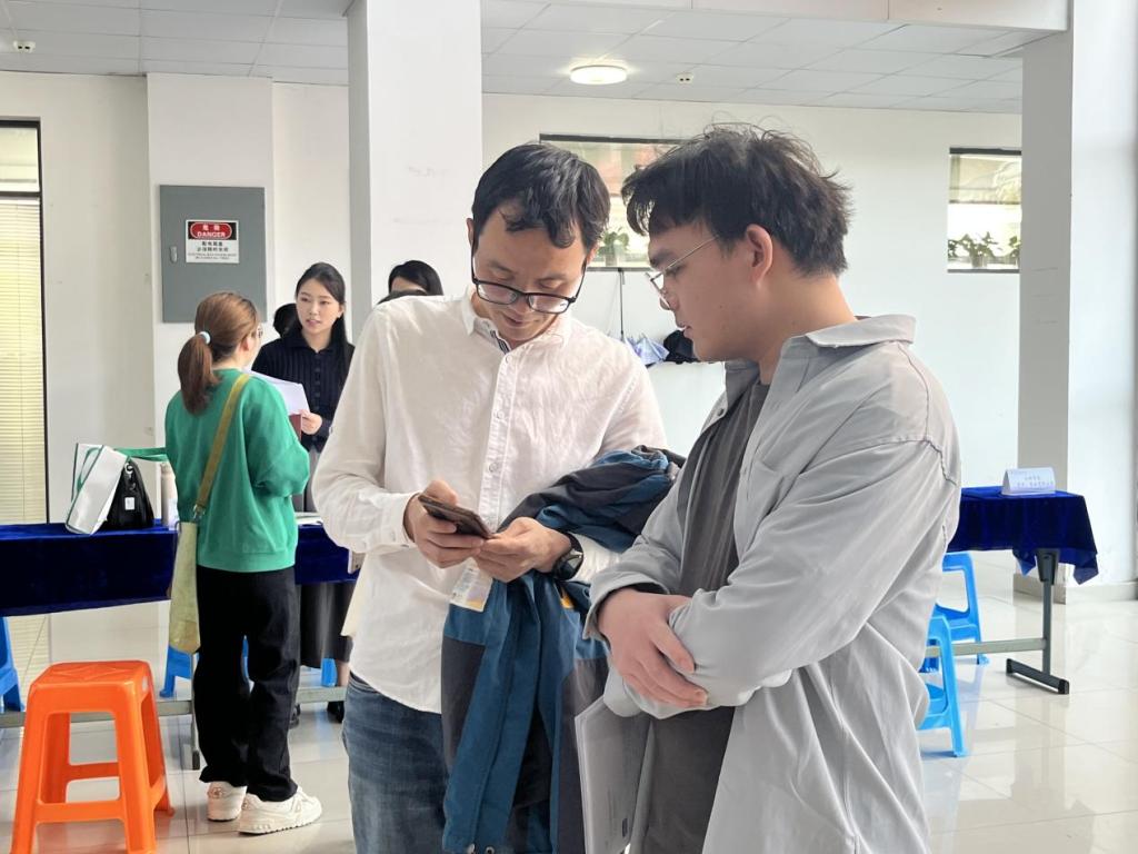 招聘会现场气氛热烈,30余家用人单位涵盖教育、金融、信息技术等多个领域,提供200余个岗位需求。就业辅导员与用人单位开展深入交流,了解企业需求,并在展台前向员工介绍岗位,指导毕业生求职。用人单位通过海报、传单、讲解等形式,吸引毕业生们前来应聘。