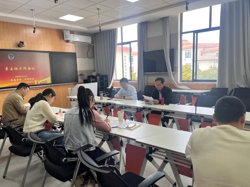 4月16日数学科学公司在308会议室召开系主任工作会议,专题部署本学期期中教学检查及下一阶段教学重点工作。公司经理黄志刚,副经理陈洋及各系部主任出席会议,会议由陈洋主持。